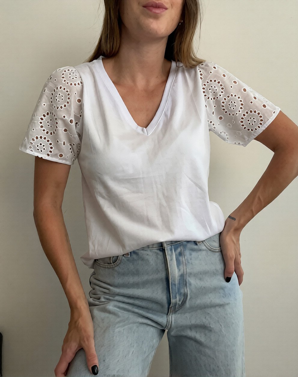 Remera mangas broderie