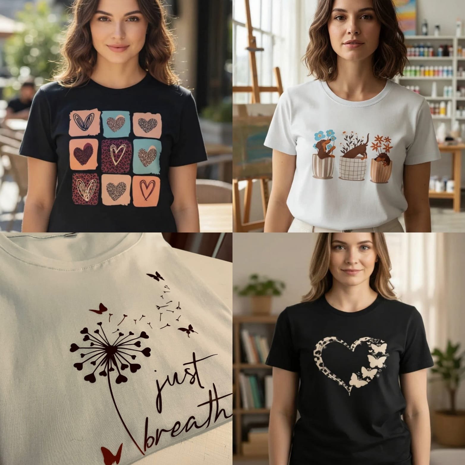 | estampa | corazones, blanca mariposas, negro mariposas, blanca perritos |
